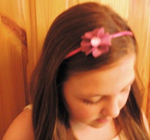 My pony tail bands are very affordable at £1.25 each – I don’t have these for sale on Folksy as I would need to put the price up considerably to cover additional costs. If you are interested in ordering one or more please contact me. I would be pleased to do an order for party bags – they make ideal bracelets for those without long hair as you can see from Megan’s photo above.