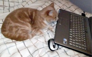 When he gets the chance to get in the house he is often found in Andy’s room – it seems he’s keen on learning to use the computer or perhaps he wants to get his paws on the mouse!
